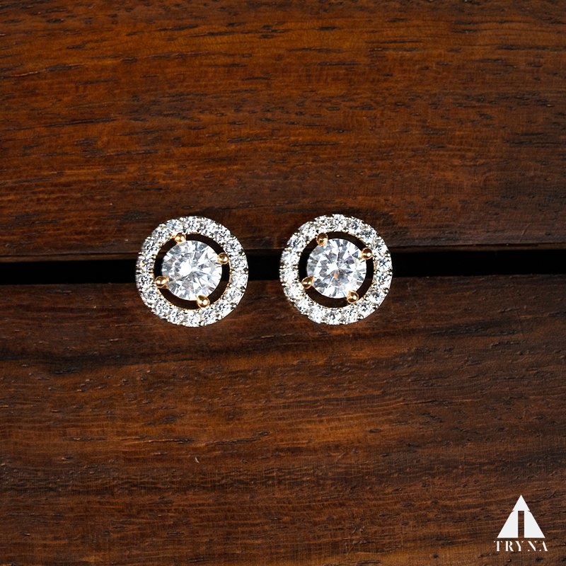Type and Style: Gold-plated double halo stud earrings with American diamonds – classic, versatile, and effortlessly chic.