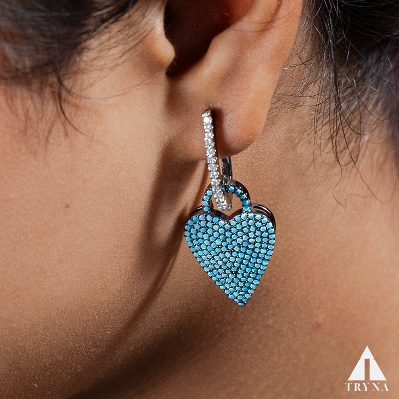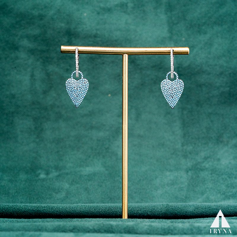 Feel and Look: These earrings feature a dazzling heart-shaped design encrusted with shimmering CZ diamonds. Their elegant sparkle adds a touch of romance and luxury, making them a chic and eye-catching statement piece.
