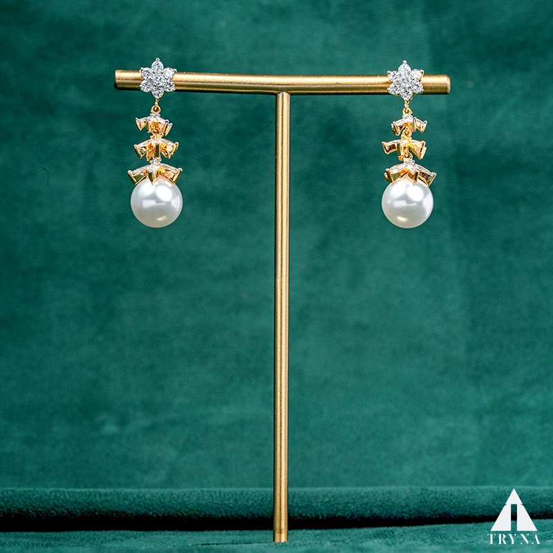 Type and Style: Gold-plated dangler earrings with American diamonds and a pearl drop. A chic yet classic accessory, ideal for women who love sophistication with a touch of glamour.