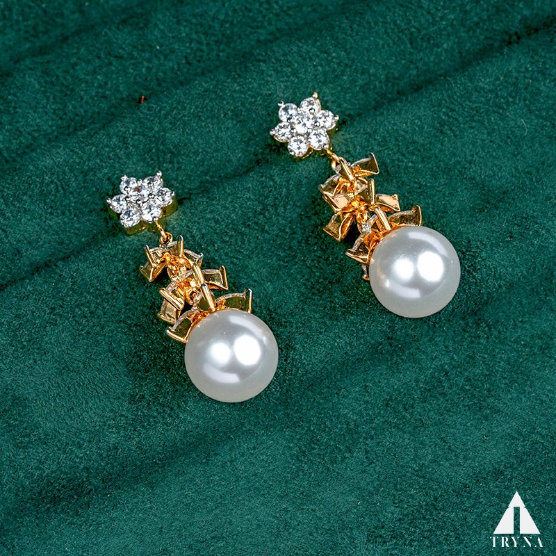 Feel and Look: These earrings showcase a brilliant floral stud design with sparkling CZ stones leading to a lustrous pearl drop. The combination of gold-plated detailing and the pearl’s natural shine creates a graceful and royal charm.