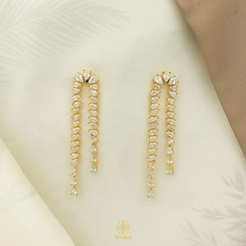 Type and Style: Gold-plated dangler earrings with American diamonds and a pearl drop. A chic yet classic accessory, ideal for women who love sophistication with a touch of glamour.