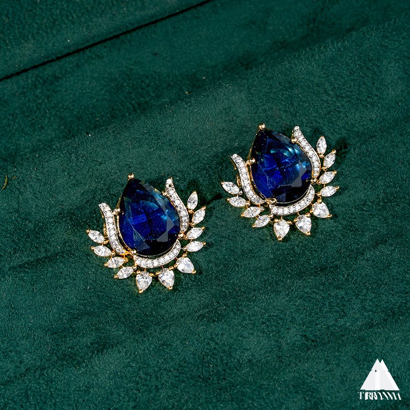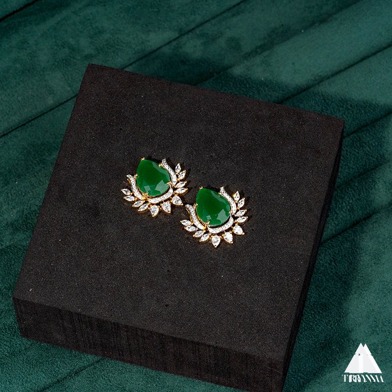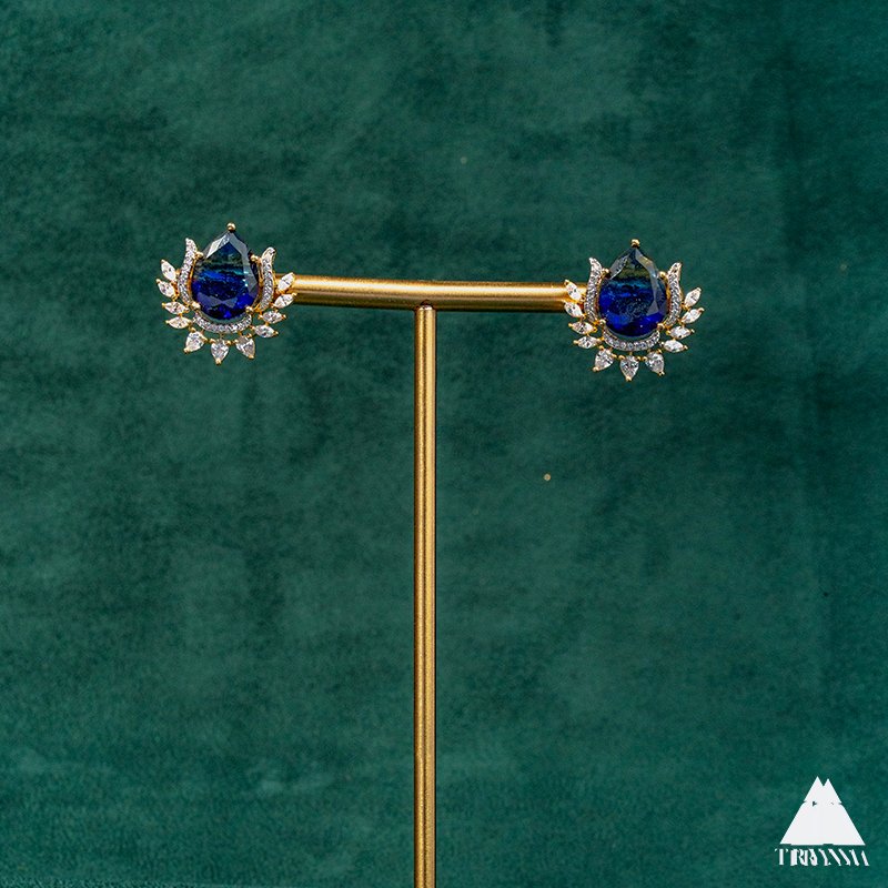 Type and Style: Gold-plated stud earrings with an intricate lattice design, embellished with American diamonds. A versatile modern accessory for both formal and casual styling.