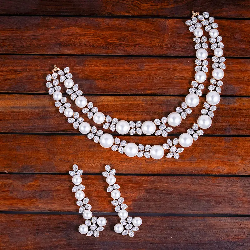 Be the first to review “Crystal Petal Pearl Necklace Set 13121”