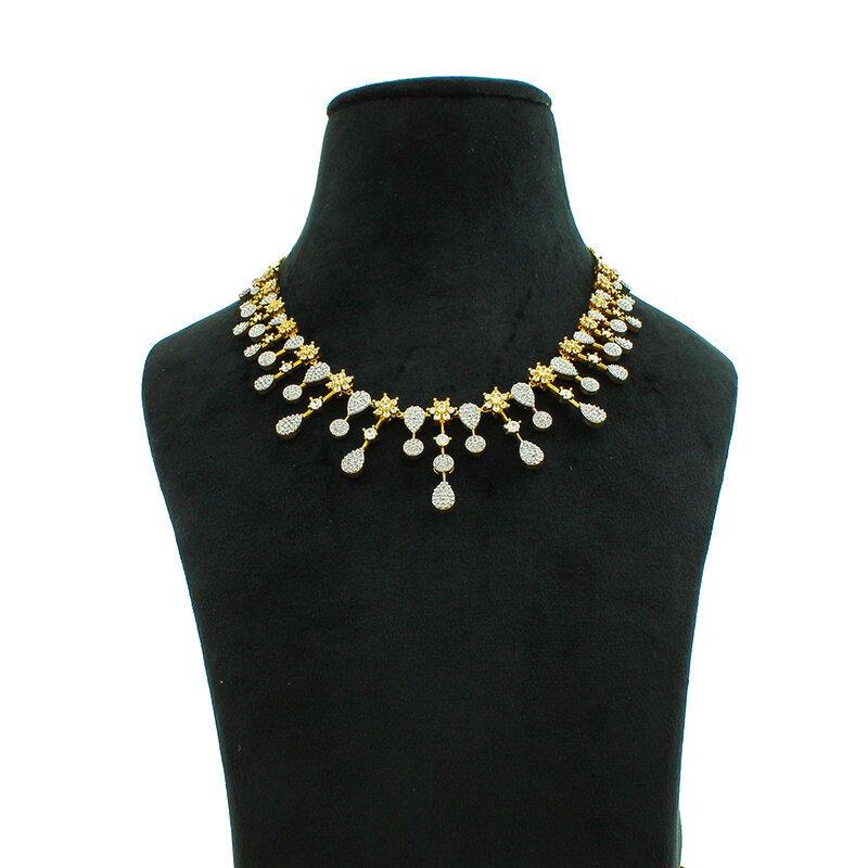 American Diamond Necklace Set – featuring a floral and teardrop design with matching earrings. A chic balance of classic elegance and contemporary charm.