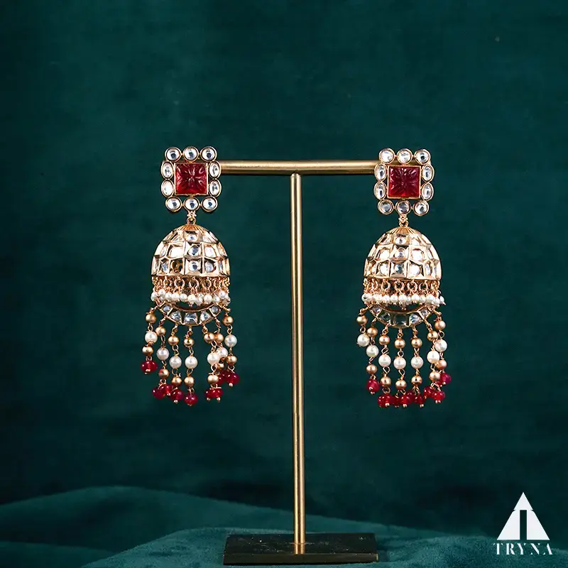 Feel and Look: Majestic and opulent with deep ruby accents and intricate pearl detailing for a royal statement.