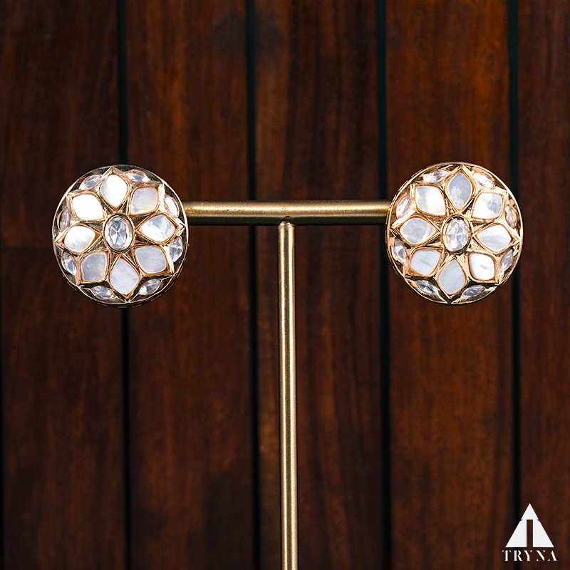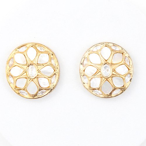 Type and Style: Gold-finish round floral pendant with matching stud earrings, designed with intricate stone inlay. A graceful heritage-inspired jewellery piece.