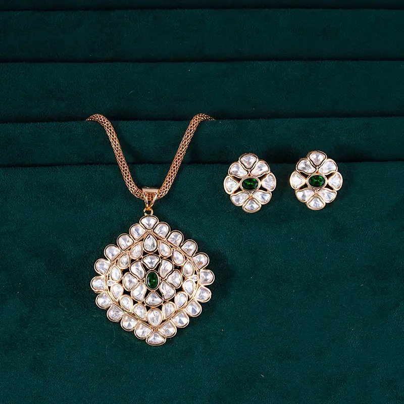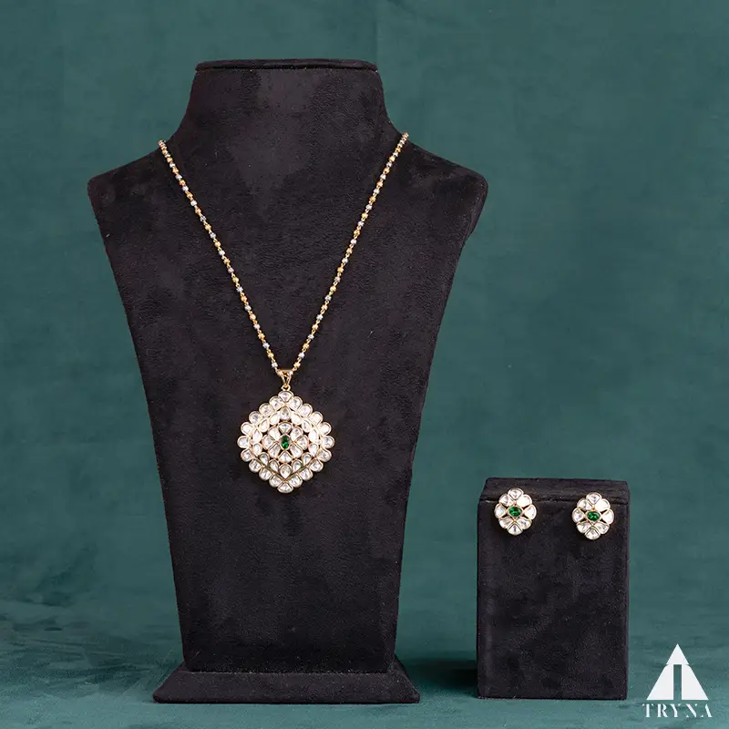 Be the first to review “Zuri Diamond Shaped Kundan Pendant Set 38322”