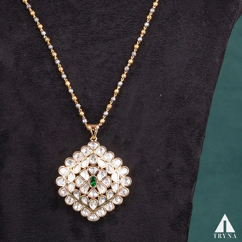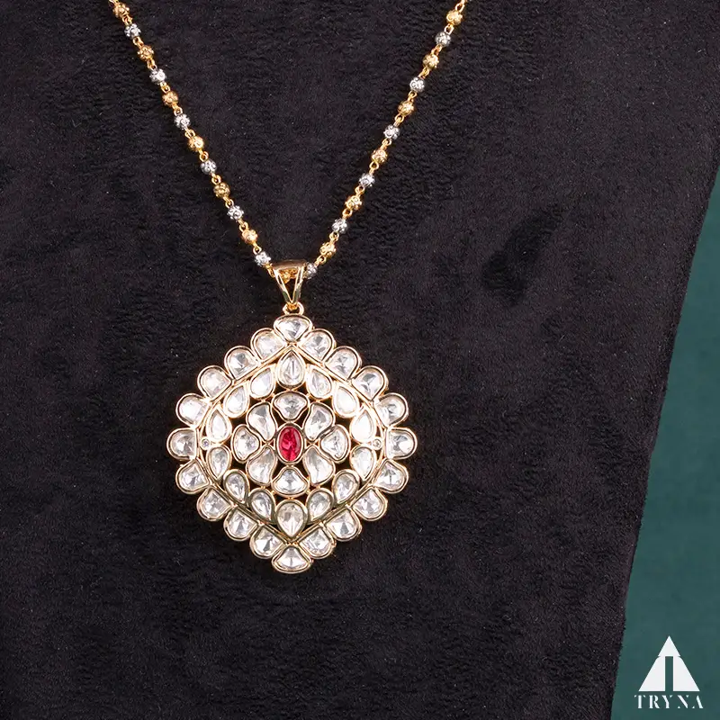 HomeShopPendent SetBig PendentZuri Diamond Shaped Kundan Pendant Set 38322