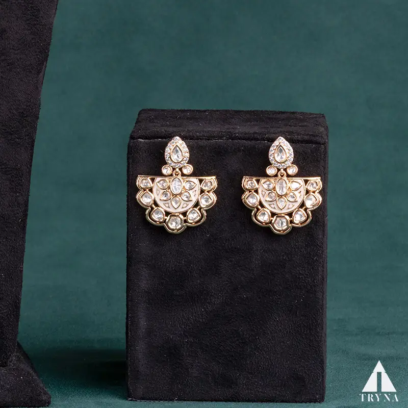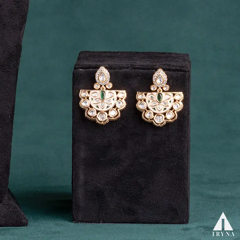 Type and Style: Gold-polished necklace with kundan embellishments and a structured crescent pendant. A classic heritage piece designed for statement styling.