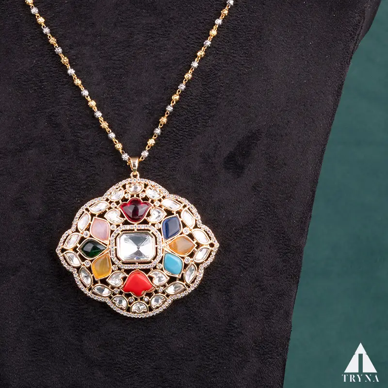 Be the first to review “Zuri Navratan Harmony Pendant Set 46322”