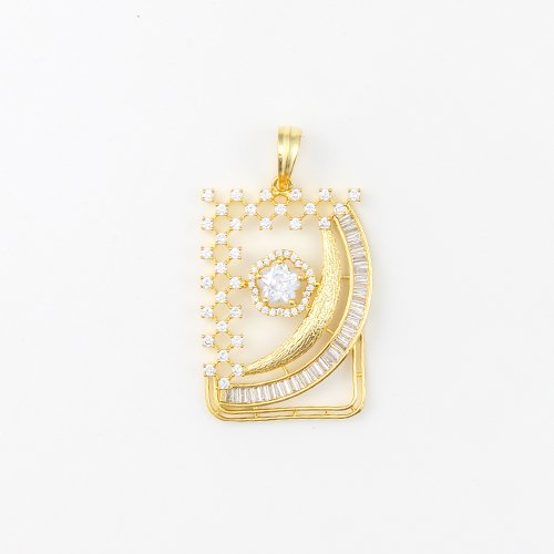 Type and Style: Gold-finished designer pendant set with crescent motif, adorned with American diamonds and a solitaire centerpiece. A statement accessory blending modern art with traditional charm.