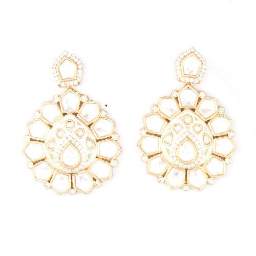 Type and Style: Gold-finish kundan-inspired teardrop pendant with matching earrings, blending traditional Indian artistry with a timeless royal charm.