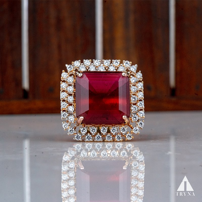 Perfect for bridal wear, cocktail evenings, royal-themed receptions, and festive occasions. This ring is an ideal choice for women seeking to elevate their outfit with a bold yet classy touch.