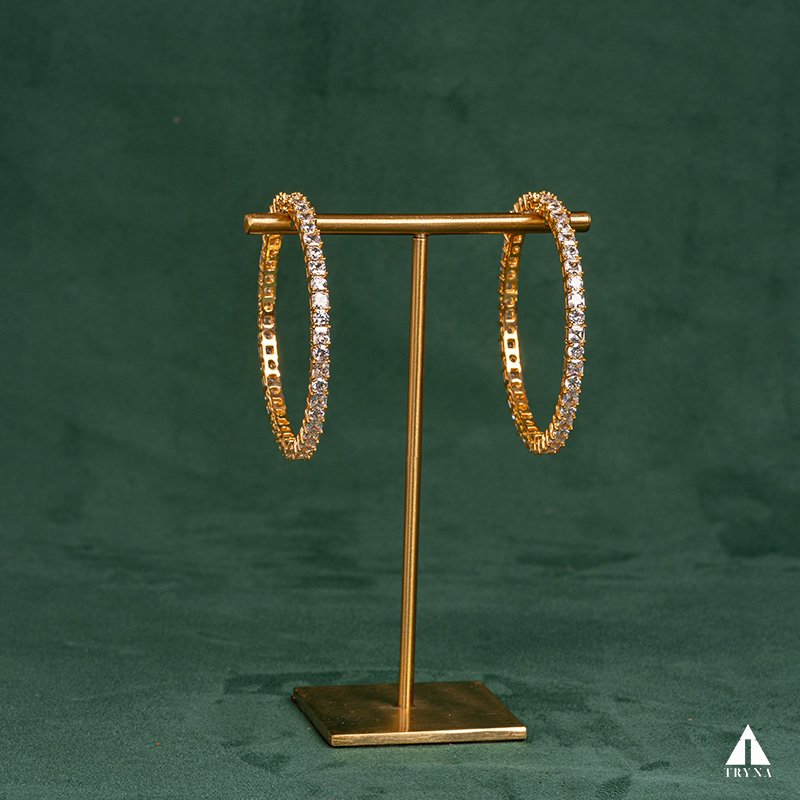 A sleek yet dazzling gold-plated bangle studded with sparkling CZ stones. It radiates sophistication and luxury, making your hands stand out beautifully during special occasions.
