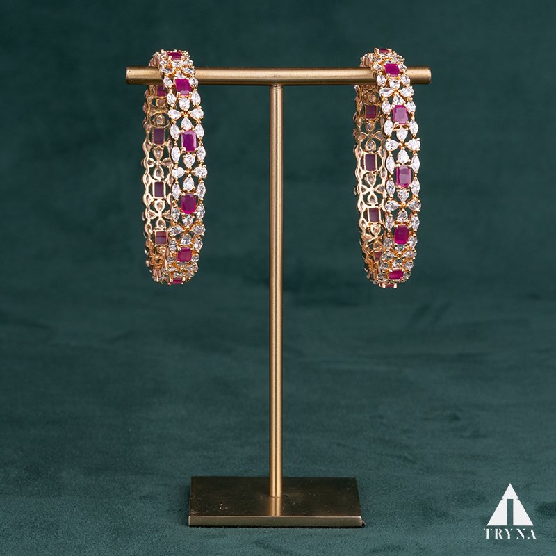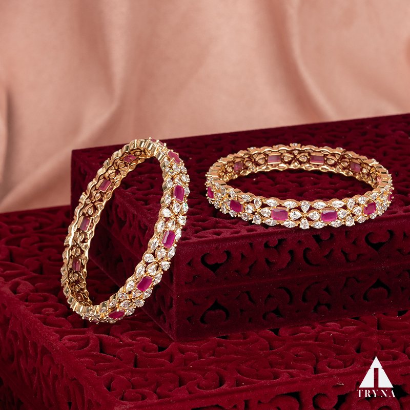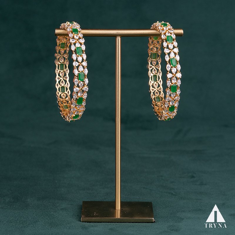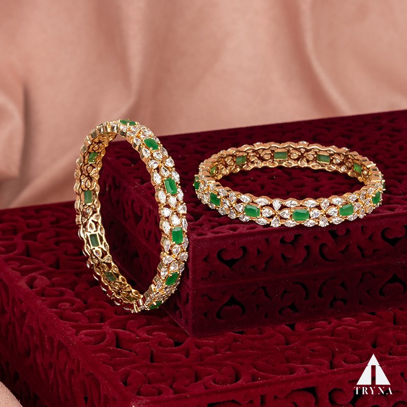 A sleek yet dazzling gold-plated bangle studded with sparkling CZ stones. It radiates sophistication and luxury, making your hands stand out beautifully during special occasions.