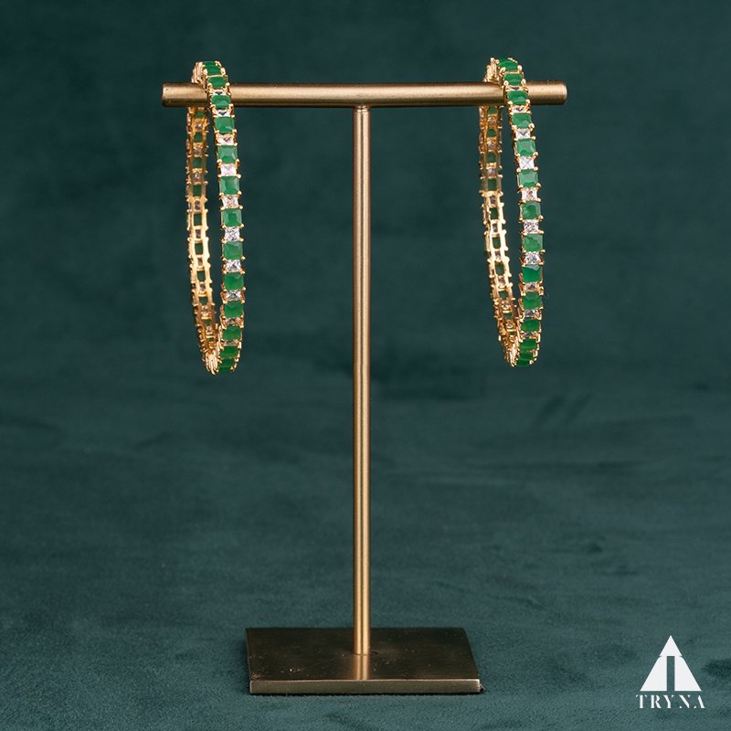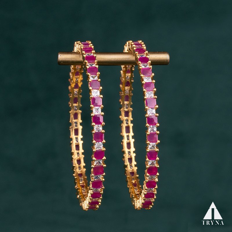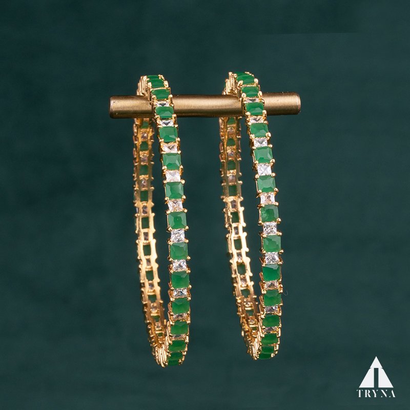 A sleek yet dazzling gold-plated bangle studded with sparkling CZ stones. It radiates sophistication and luxury, making your hands stand out beautifully during special occasions.