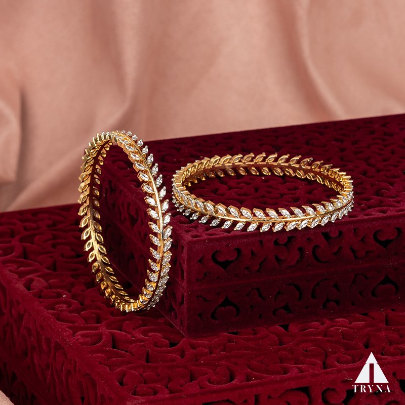 A sleek yet dazzling gold-plated bangle studded with sparkling CZ stones. It radiates sophistication and luxury, making your hands stand out beautifully during special occasions.