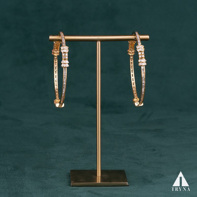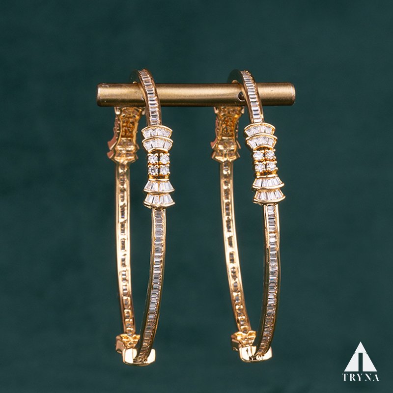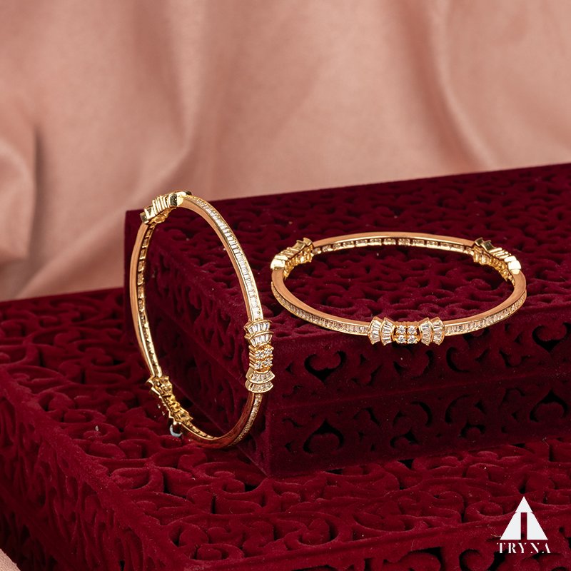 A sleek yet dazzling gold-plated bangle studded with sparkling CZ stones. It radiates sophistication and luxury, making your hands stand out beautifully during special occasions.